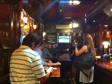 Όταν σήμανε ο Βig Ben της τελετής έναρξης, οι διπλανοί μου τσέκαραν τα ρολόγια τους. «Πάει μπροστά ένα λεπτό» είπαν. Κανένας δεν γέλασε. Το σχόλιο ήταν τόσο british, όσο και η τελετή λήξης. Το ίδιο και οι αντιδράσεις τους. Η μπάρα έχει γεμίσει, όπως και τα τραπέζι μπροστά στην τηλεόραση, κάτω από τις μικρές βρετανικές σημαίες. Στο timeline μου στο twitter ουρλιάζουν για την περιγραφή της ΕΡΤ. Εδώ οι σχολιαστές έλεγαν μόνο τα απαραίτητα. Τι να πουν στον τηλεθεατή; Ότι αυτοί με τα καπέλα είναι οι Pet Shop Boys; Σαν να τους συστήνουν τη βασίλισσα. Οι Pet Shop Boys αρέσουν στους θαμώνες του Taylor Walker. Δεν τρελαίνονται, αλλά τους φτιάχνουν τη διάθεση. Στα ποπ κουνιούνται λίγο στις καρέκλες τους. Μετά το αφήνουν. Γυρίζουν την πλάτη, λένε τα δικά τους. Η τηλεόραση τους πετάει κανέναν γνωστό ήχο σαν δόλωμα και της χαρίζουν πάλι την προσοχή τους. Στους Pink Floyd αδιαφορούν. Στις Spice Girls καλοδέχονται την έκπληξη. Καταλαβαίνω ότι όλα όσα συμβαίνουν στην οθόνη είναι κομμάτια από εικόνες που βρίσκονται στην καρδιά και στο μυαλό τους. Δεν βλέπουν κάτι ξένο. Και δεν έχουν αυτό το δικό μας το επαρχιώτικο. Εμείς δεν θα βλέπαμε στην οθόνη. Εμείς θα προσέχαμε τα μάτια των ξένων για να καταλάβουμε πώς μας βλέπουν. Εγώ πάντως τους έκλεισα πονηρά το ένα δικό μου.